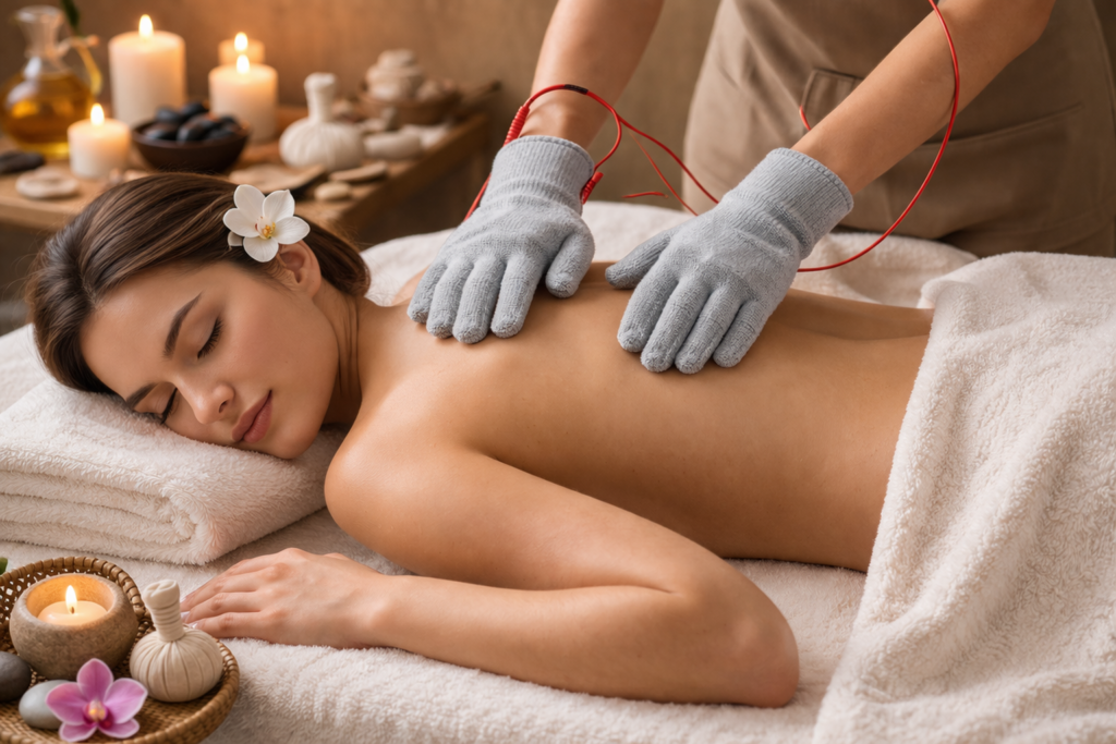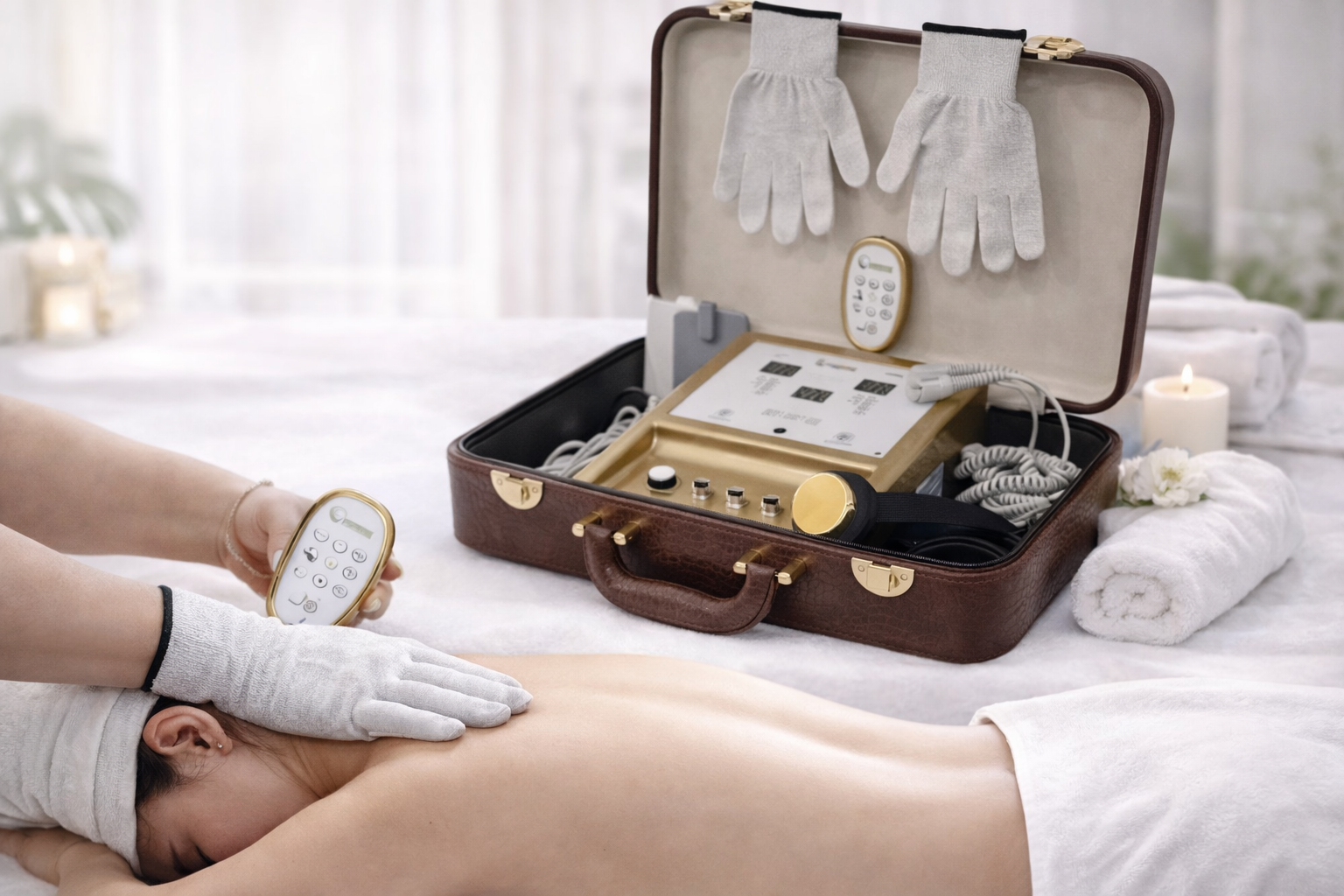 Μέσω ειδικών αγώγιμων γαντιών, μεταφέρονται ήπιοι βιοενεργειακοί παλμοί που δρουν σε βάθος στους μυς και ενεργοποιούν τα ενεργειακά κανάλια του σώματος, αποκαθιστώντας την ισορροπία και ενισχύοντας τη φυσική λειτουργία του οργανισμού.
